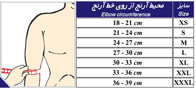 دارای چند لایه پد جهت محافظت از نواحی حساس آرنج. دارای نوار قابل تنظیم، تهیه شده از بهترین نئوپرن وارداتی همراه با پوششی از پارچه حولهای کتان، در هفت سایز مختلف قابل استفاده برای همه سنین