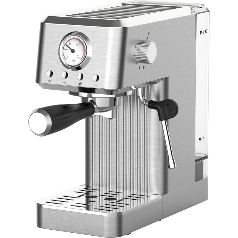 اسپرسوساز ترام هاوس مدل EM-15204 دارای طراحی شیک و باریک بوده که فضای کمی را اشغال می کند و هر قسمتی از آشپزخانه می تواند آن را قرار داد . بدنه این اسپرسوساز بسیار مقاوم بوده و دارای بویلر آلمینیومی دایکاست جهت افزایش استحکام است. اسپرسوساز ترام هاوس مدل EM-15204 دارای صفحه نگهدارنده فنجان است که برای گرم کردن فنجان و برای قرار دادن قهوه تان تا زمانی که بخواهید نوش جان کنید طراحی شده است . فشار بخار به صورت مستقیم بر عطر و طعم قهوه خروجی از دستگاه تاثیر گذار است که در این اسپرسوساز معادل 20 بار است که بهترین خروجی را در اختیارتان قرار می دهد . جنس خروجی بخار اسپرسوساز ترام هاوس از استیل ضد زنگ است و برای نوشیدنی های ترکیبی و فوم شیر قابل استفاده است . توان مصرفی این اسپرسوساز معادل 1350 وات است.مخزن آب اسپرسوساز ترام هاوس مدل EM-15204قابل جدا سازی و شست و شو است . مخزن شفاف 1.2 لیتری این دستگاه این امکان را به شما می دهد که بتوانید میزان آب درون دستگاه را ببینید . این اسپرسوساز دارای پمپ حرارتی است که وظیفه تامین مورد نیاز برای بالا بردن دمای آب جهت عصاره گیری از قهوه را در اختیار دارد . این اسپرسوساز دارای فشارسنج ULKA میباشد و سیستم بخاردهی پیشرفته دارد.