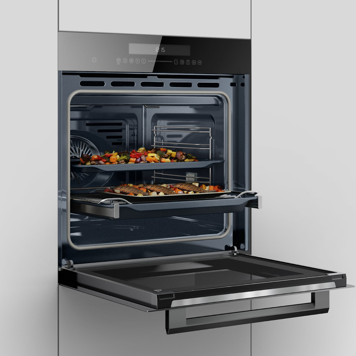 - ریل تلسکوپی: سهولت در بیرون آوردن سینیها و جلوگیری از سوختگی.