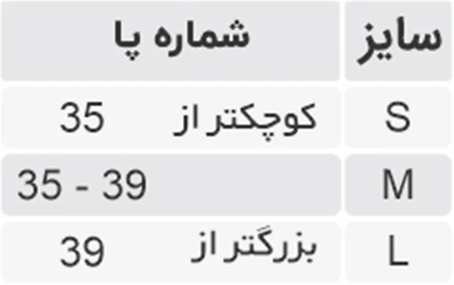 سایز کفش را براساس توضیحات داده شده انتخاب نمایید