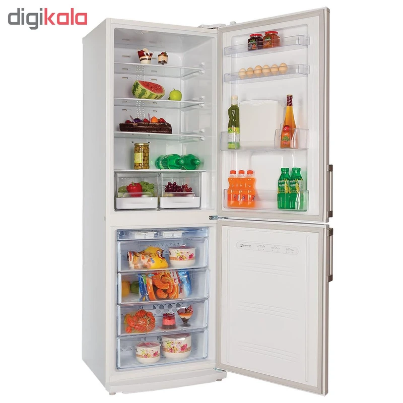 بخش فریزر هم با ظرفیت قابل توجه ۱۵۹ لیتر، به ۴ طبقهی اصلی، ۱ قفسهی کاربردی روی درب و ۲ کشوی عمیق و شفاف مجهز است. این ترکیب هوشمندانه از طبقات و کشوها، امکان دستهبندی دقیق و انجماد انواع گوشت، مرغ، ماهی، سبزیجات و سایر مواد غذایی را به بهترین شکل ممکن فراهم میآورد و دسترسی به آنها را بسیار آسان میکند. نورپردازی LED داخلی در هر دو بخش یخچال و فریزر، روشنایی یکنواخت و کاملی را ایجاد میکند و به شما کمک میکند تا به سرعت آنچه را که نیاز دارید، پیدا کنید.